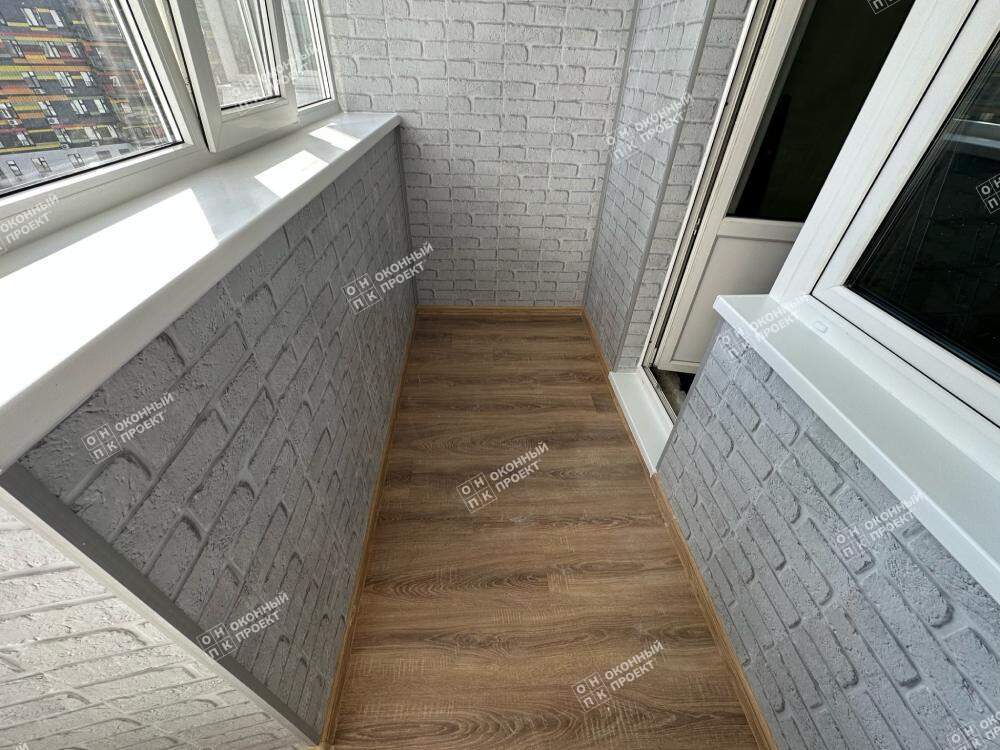 Балкон приобрел современный и стильный вид благодаря сочетанию высококачественного остекления и оригинальной отделки панелями с имитацией кирпича. Заказчик был полностью доволен результатом.